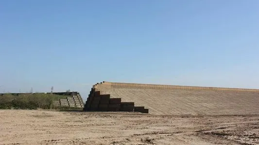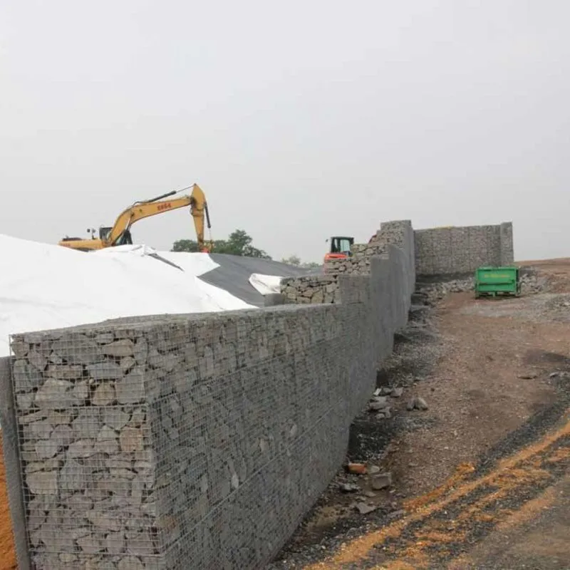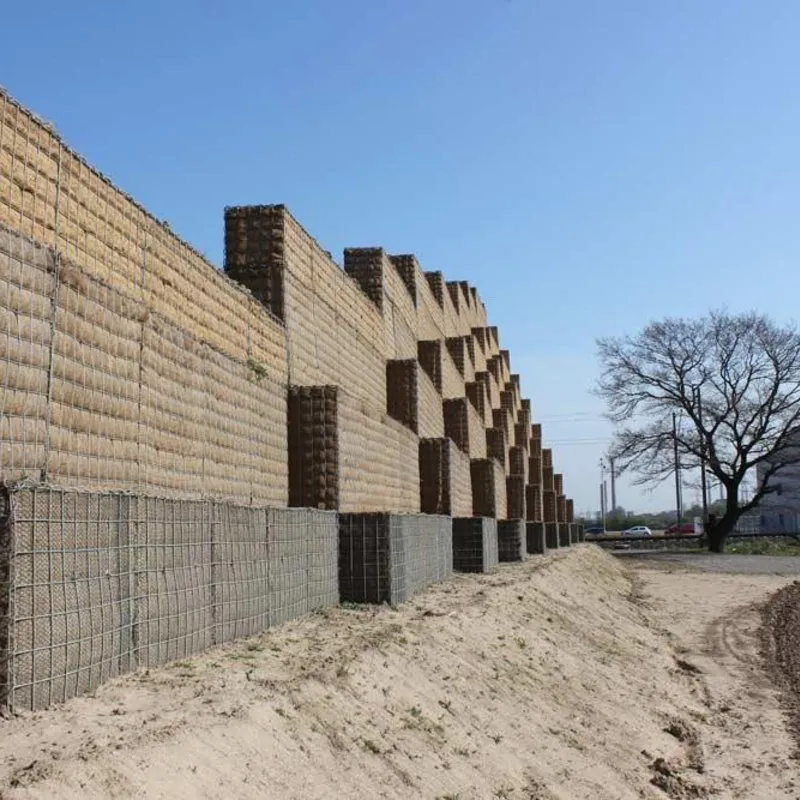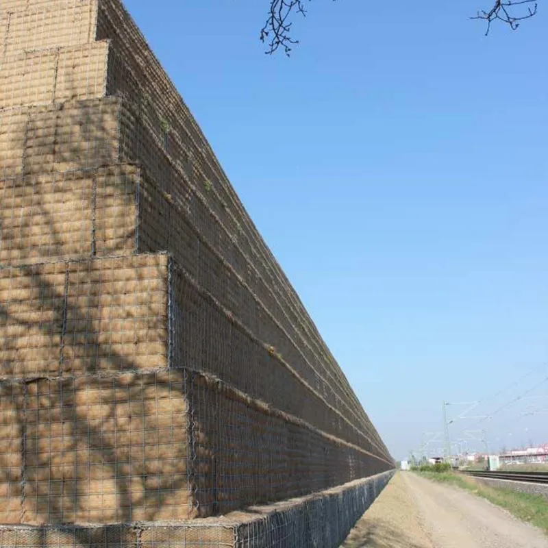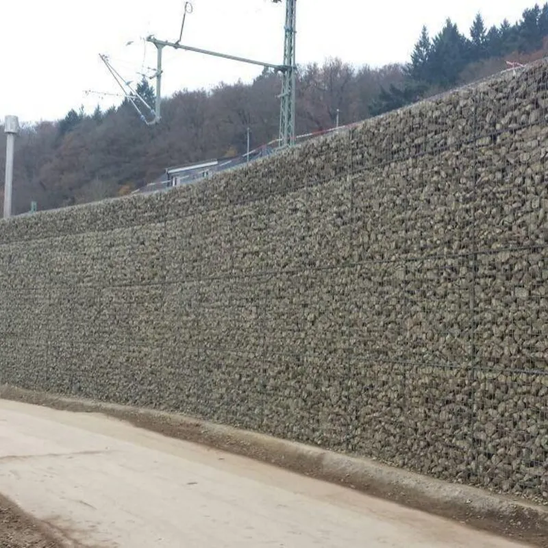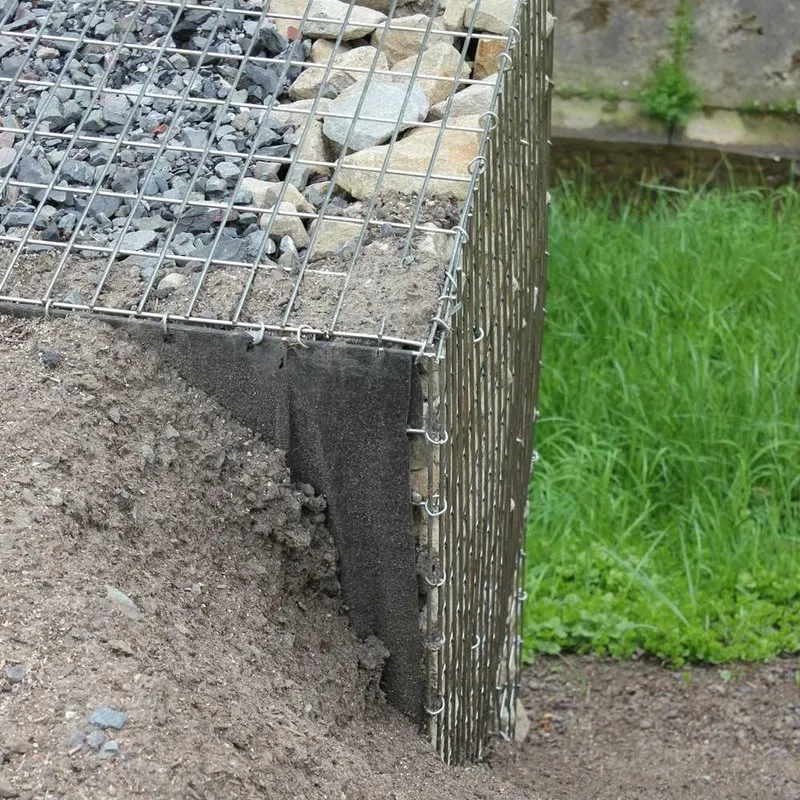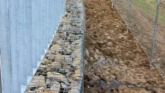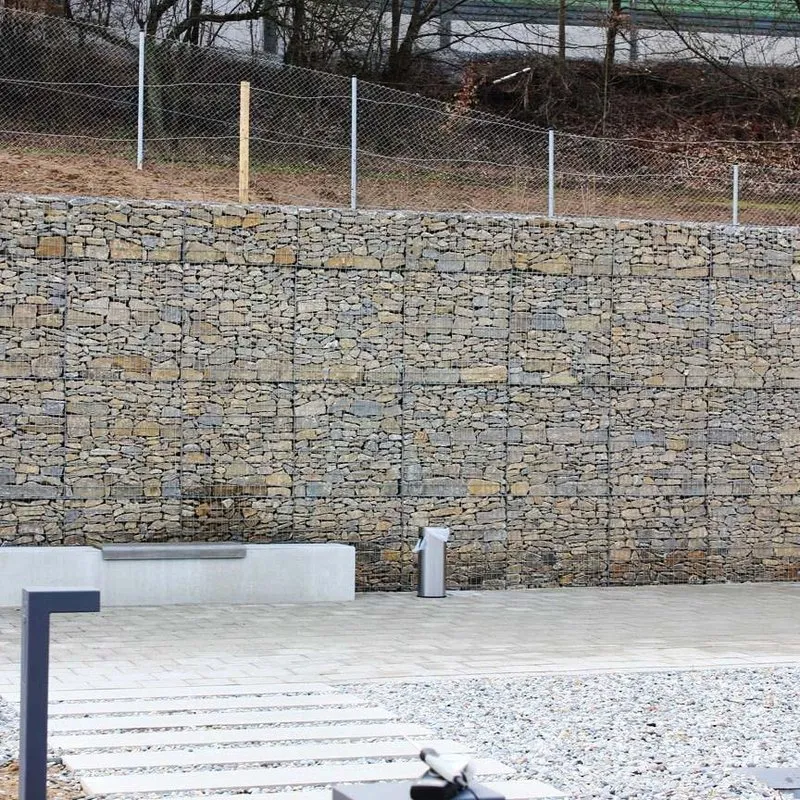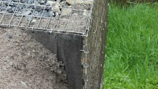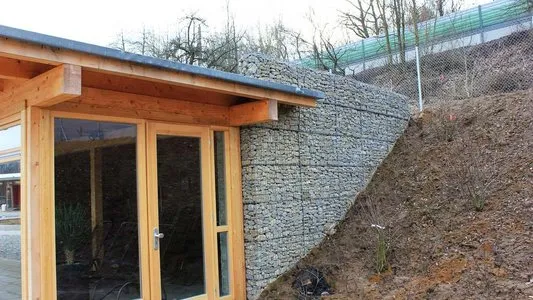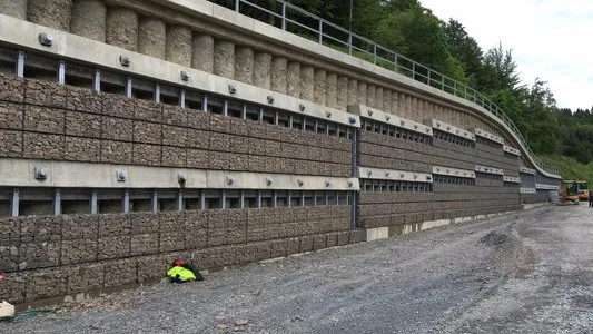 Auf dem Gelände, das hinter der Gabionenwand als Bauland zu erschließen war, befand sich überschüssiger Boden. Um eine Entsorgung zu vermeiden, wurde dieser hinter der Gabionenwand bis auf eine Höhe von 9m angeschüttet. Die Bodenanschüttung hinter der Gabionenwand beträgt ca. 350.000m³. Um diesen Boden in der Böschung zu halten, wurde ein Geogitter zur Stabilisierung eingebaut.