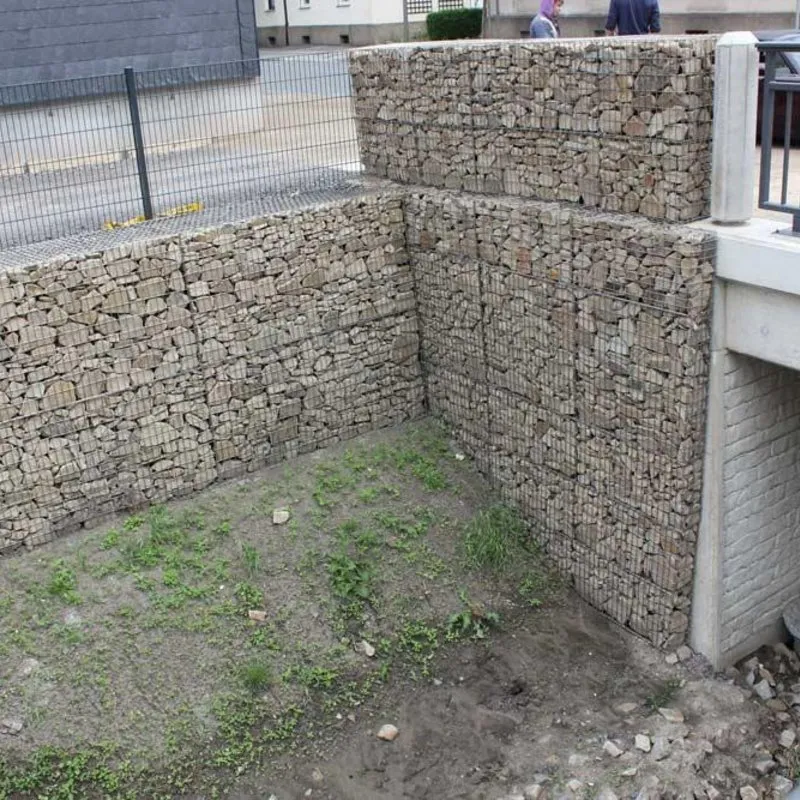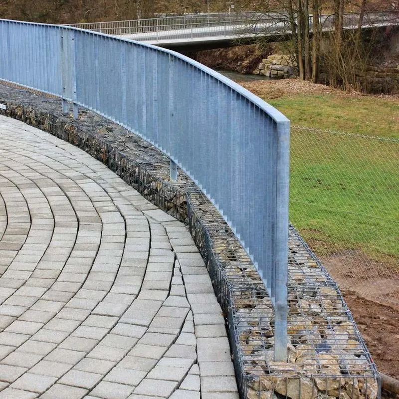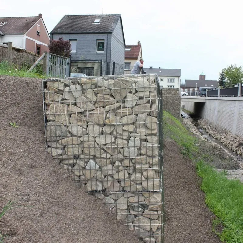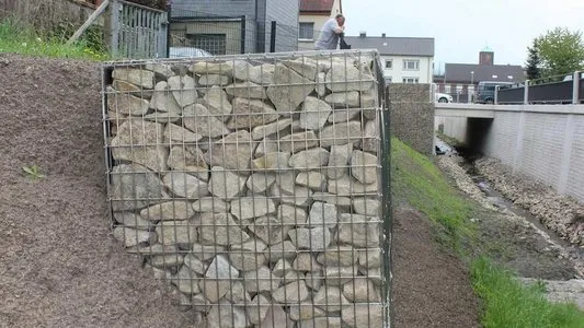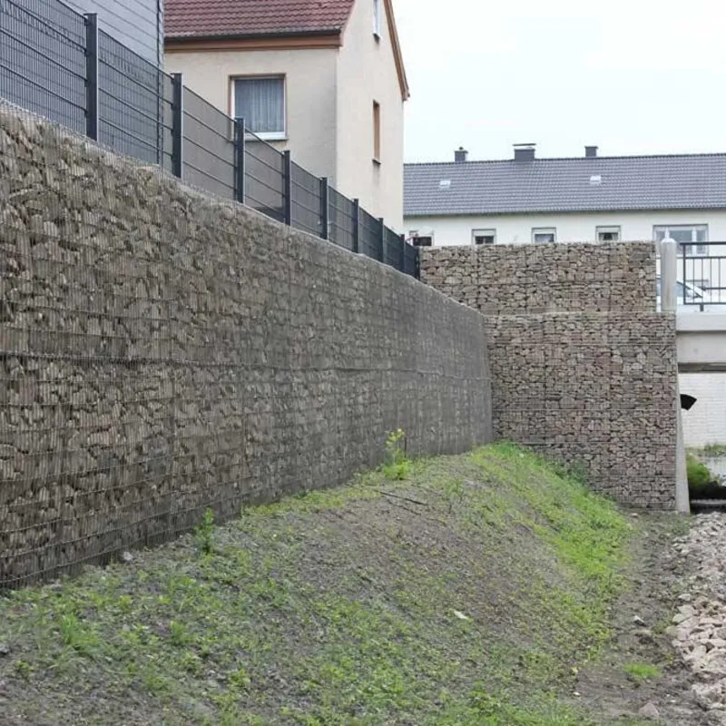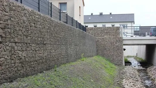 Im Bereich Castrop-Rauxel wurde der Bereich Abwasser und Hochwasser eine gestalterische Gabionenwand aus Edelstahl gebaut, um aggressive Wässer und die Böschung gegen Ausspülen zu sichern.