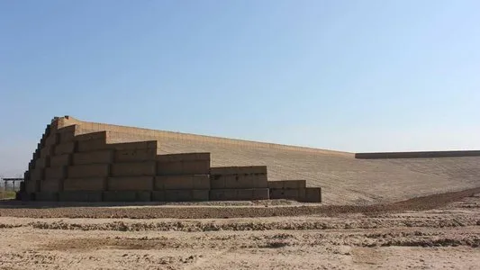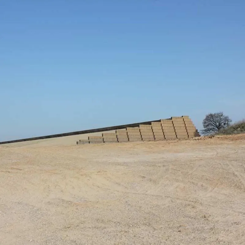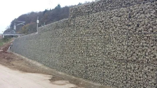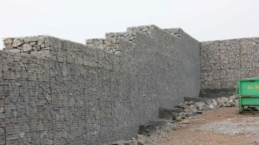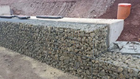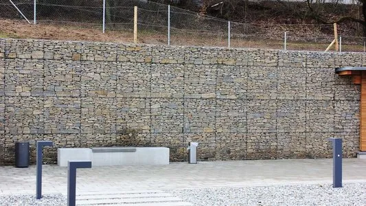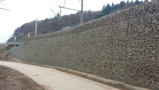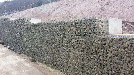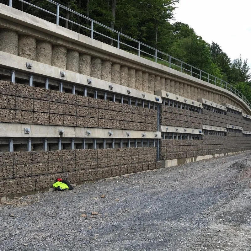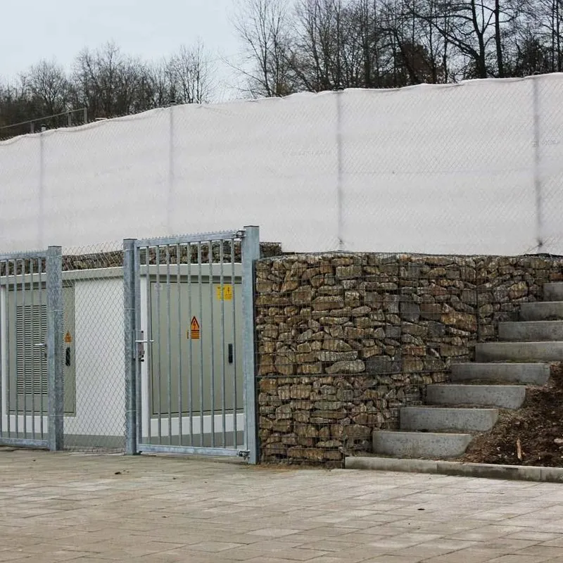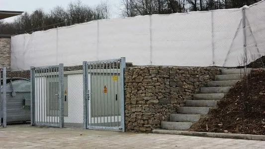 Hierbei wurde eine Bohrpfahlwand verkleidet mit einer Größe von 675m². Die Besonderheit bei diesem Projekt war die Sondergröße der zu liefernden Gabionenkörben von 85 x 16,5 x 46 cm.